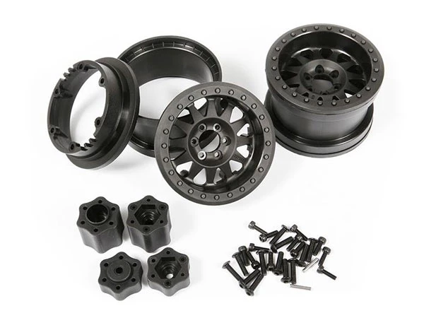 Officially licensed Method 12 spoke beadlock wheels dressed in an aggressive all black style are easy to assemble and they work with most 2.2 tires. The hub design allows this wheel to mount to any Wraith, AX10 Ridgecrest or SCX10. Our IFD™ (Interchangeable Face Design) wheel system makes it easy to dress it up with a new look.