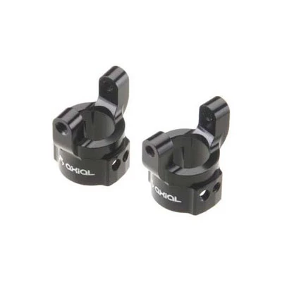 Aluminum C-hubs are set at an increased castor angle to improve driveshaft angle while maintaining proper castor angle. Designed with a lower profile to allow the maximum steering angle using stock steering knuckles (when used in conjunction with AX30464 Axial Universal joints).