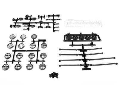 Axial’s new Universal 5 Bucket Light Bar Set comes with a complete set of screws and plastic parts designed for a variety of Axial vehicles as well as a universal system for additional mounting applications. The light bar’s tubular design gives your vehicle cool scale looks and each light bucket can be outfitted with an LED light to help guide the way on those late night runs (LED lights sold separately).The set also includes three different mesh grilles for your lights: plain, Axial and officially licensed PIAA grill covers. PIAA is a registered trademark of PIAA Corporation.